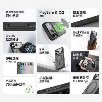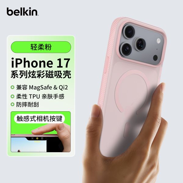 Belkin贝尔金苹果17手机壳iPhone17promax/Air新款半透明全包炫彩手机壳支持MagSafe磁吸Qi2防摔保护套软壳
