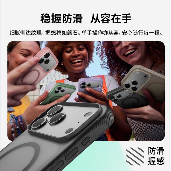 SheerForce Grip 炫彩系列手机壳集时尚外观与可靠耐用性于一身—,防滑侧边设计能有效抵御日常跌落、碰撞和刮擦,精心呵护您的爱机