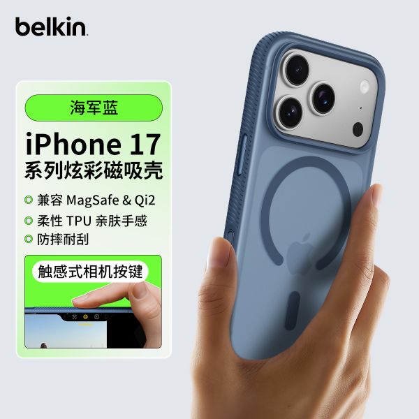 Belkin贝尔金苹果17手机壳iPhone17promax/Air新款半透明全包炫彩手机壳支持MagSafe磁吸Qi2防摔保护套软壳