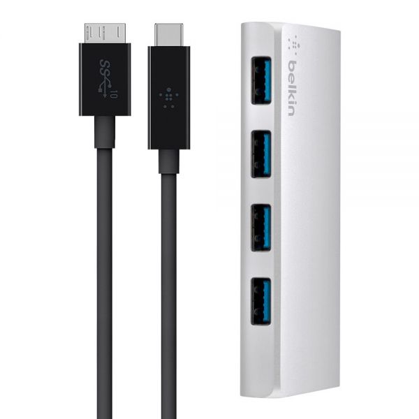 Belkin贝尔金USB3.0高速4口USB集线器工业级HUB带电源USB-C 线缆 F4U088qe